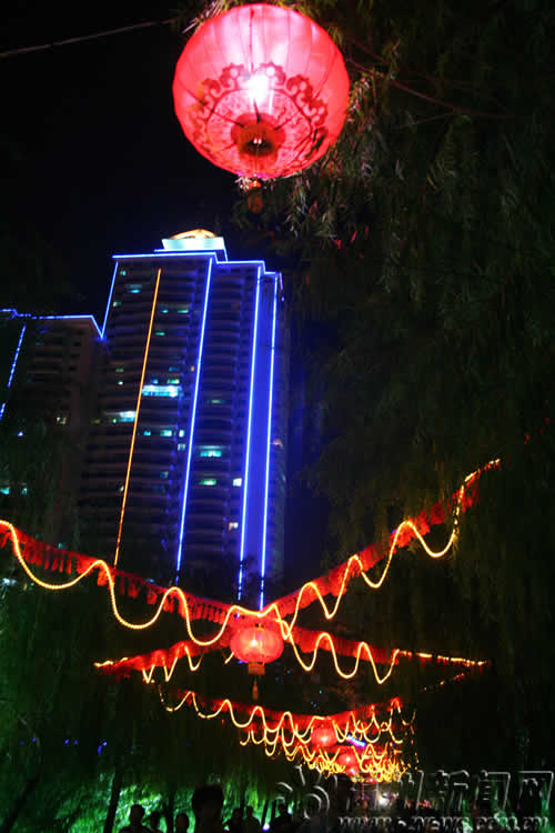 西湖公园流光溢彩灯笼高挂 提前感受喜迎佳节