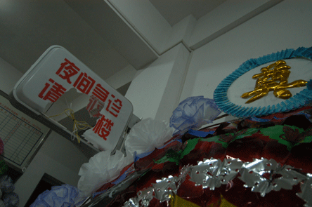 昨晚8时,记者一进连江县马鼻医院,就发现在医院大厅的门口摆了几十个花圈,大厅的进口已挂上了一个白布幔子。而在大厅的正中央,安放了一个冰棺,还有一个60岁左右的依伯在写设灵堂用的挽联。整个医院除了办理丧事的人员外,没有一个医护人员。在医院的门口,记者还看到两个警察。