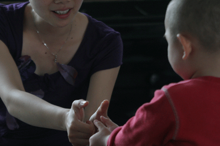 高级育婴师吴家汝与婴幼儿的交流经常是用手势,这是一种默契,培养他们的想象能力。