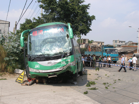 两名年轻妇女瘫坐在地,抱头痛哭。她们的丈夫此刻被压在一辆大巴车的前轮下,血肉模糊,已经死亡。