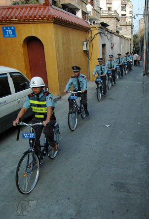鼓东派出所副所长柯大兴说,38名保安将被分成7个小组,骑着自行车,走街串巷,在辖区内进行全天候巡逻。