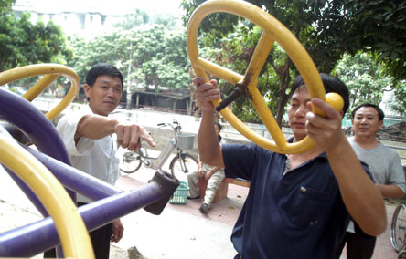 在温泉公园,记者看见一位姓林的依伯,自己带了工具,将一架椭圆机脱落的一只踏板修好。林依伯感慨道,修好这些器材,不能单靠有关部门。“如果有热心公益事业的公司或市民,出力帮忙解决这个问题就好了”。
