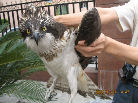 经长乐市野生动物管理站技术人员鉴定,被抓获的鸟不叫“猫头鹰”,而是一种俗称鱼鹰,学名为鹗的鸟,属国家二级保护野生动物,是福州的留鸟,十分罕见。