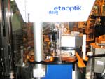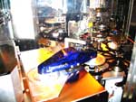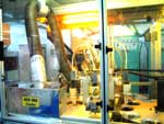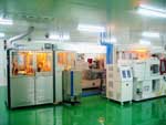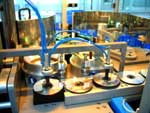 母模安装到光碟生产注塑机上,在恒温恒湿的净洁室内由自动手臂输送,从注塑成形—金属反射层的溅镀—保护胶涂护— UV 光固—在线检测—线外检测,完成碟片的制作过程,转入碟面印刷工序