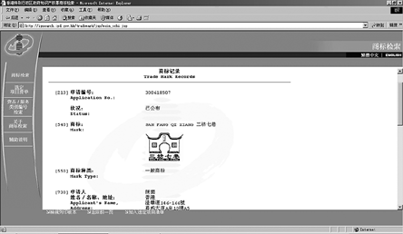 记者进入王先生所说的网站,果然发现商标记录上显示着,商标:SAN FANG QI XIANG 三坊七巷,及相应的商标图像,申请人为陈菌,地址为香港渣华道嘉威大厦。