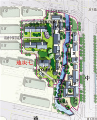 地块七 位于茶亭街的南段,北面紧临群众路,东面紧临八一七中路,南面紧临交通路,是“福州水街”的结尾段,其用地性质为二类居住用地(R2)、商业金融用地(C2)、社会停车场库用地(S3),建筑用地面积为12632平方米;