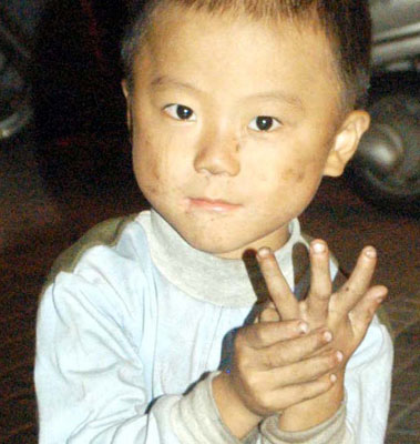 表演间隙,记者问小男孩几岁了,他天真地扳着手指说四岁。边上那位大一些的小男孩说,他十岁,是四岁小男孩的哥哥。