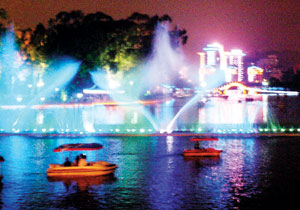 昨晚的西湖灯火通明,公园里的音乐喷泉上演了它的“处子秀”,吸引着好多市民的眼球。黄金周期间,每晚7:30后,市民都可以欣赏到音乐喷泉。