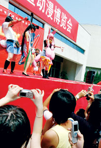 昨日中午,福建博物院,来自闽江学院的学生们穿着稀奇古怪的动漫装走秀。台上表演精彩,台下相机的快门声不断。不过,动漫天使竟被一些小朋友误认为是乌鸦,有的小朋友还被吓哭了。