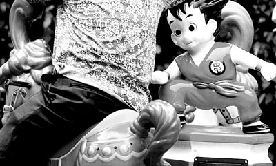 ▲占位 福州步行街,本来给儿童玩乐的玩具,却给大人占用了 本报记者 林风 摄