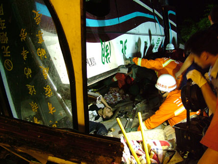 入选理由:大巴车翻下高速路,车体严重变形,39名乘客被困在车内濒临死亡。在这危难时刻,三明消防支队官兵冒着生命危险,经过3个多小时的营救终将被困乘客全部救出。