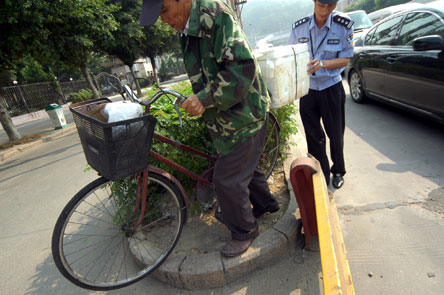 护栏安装完毕后,铁路医院门口的通道被封死。部分市民又另辟蹊径从旁边花圃的一个缺口处通过。其中有抱小孩的妇女,还有手牵手的两个老人都被“卡”在车流当中。