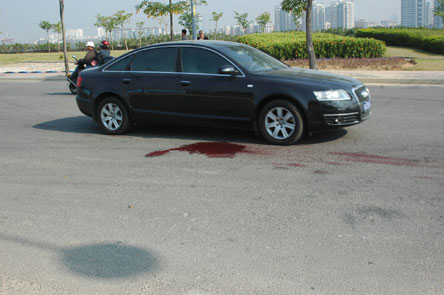 记者赶到现场时,道路已恢复畅通,宽大的路面留下一大摊血及一条数米长的刹车痕迹。