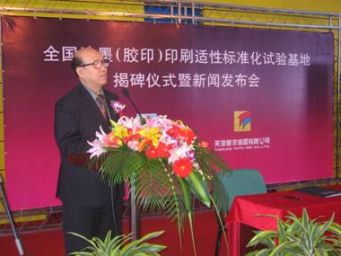 2007年4月20日上午,全国印刷标准化技术委员会(SAC/TC170)与天津东洋油墨有限公司合作建立的“全国油墨(胶印)印刷适性标准化试验基地”在天津东洋油墨有限公司举行揭牌仪式暨新闻发布会。新闻出版总署科技司处长蔡京生、中国印刷技术协会名誉理事长武文祥、中国印刷技术协会常务副理事长兼秘书长张双儒、国家印刷装潢制品质量监督检测中心苏传健、天津市印刷技术协会理事长张德旺、廊坊市印刷技术协会秘书长吕云楼及京、津、廊坊地区主要印刷厂领导和嘉宾近代200人出席揭牌仪式和新闻发布会。